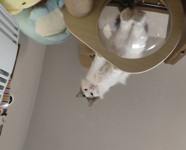モカはお気に入りの宇宙船ハンモックからこちらを眺めていました😂😂💕