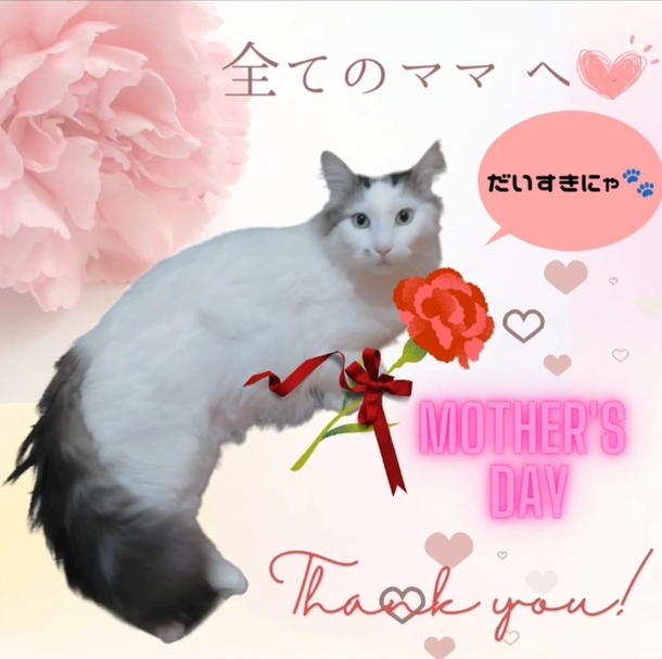 1日遅れですが💦💦この投稿を見て下さった全てのママさんへモカからカーネーションを送ります🐱🌹(モカにとっては、優しい方はみーんなママさんです!😆甘ったれなので💓)
