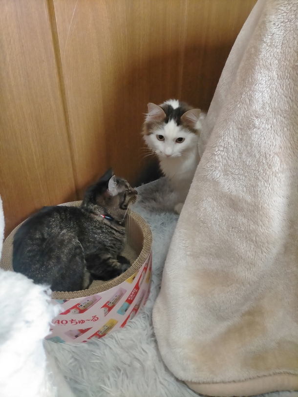 昨日は遂にトラが入ってる時にモカが突撃訪問!何やら2人でごにょごにょ喋った後、モカが入口を封鎖する形で順番待ちしていました😹