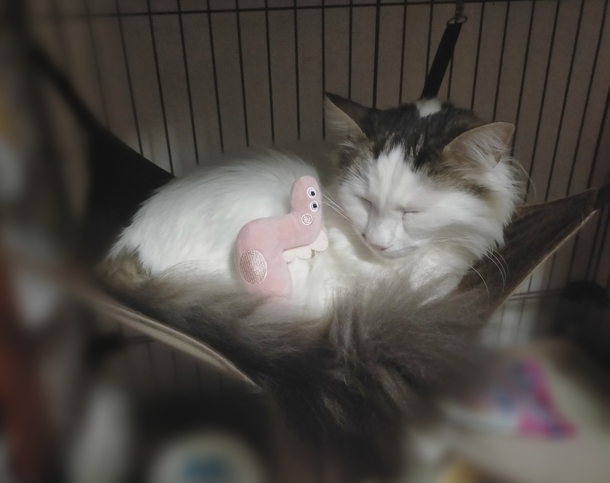 最近はこのハンモックで寝ていることが多いです😴(ぬいぐるみは、爆睡してたのでそっと乗せてみた所、なにも気にせず😹)