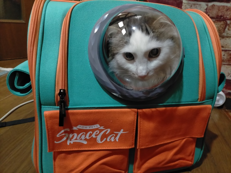 🔺宇宙船ハンモックが大好きなので、キャリーバッグも宇宙船になったモカ😹よくこの透明ボウルから顔を覗かせてくれます💕