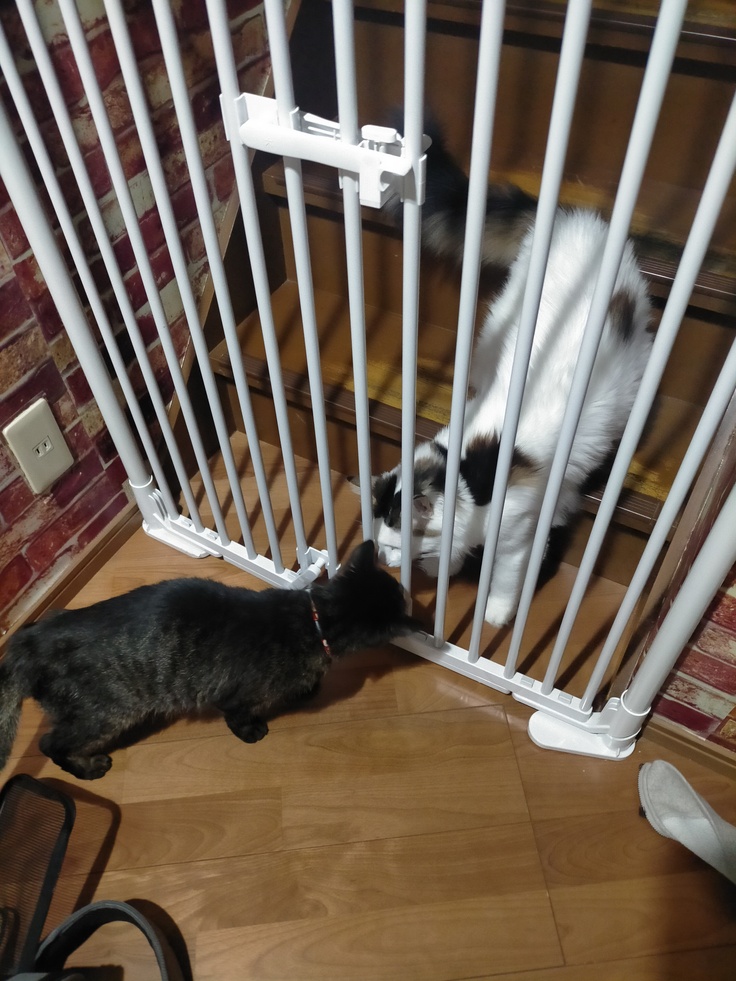 🔺病院帰りはいつもおかえり~!!をしてくれたモカ😸トラお姉ちゃんも、はじめて会った時はあんなにシャーシャーフーフしてたのに、いつの間にかお鼻ツンツンと可愛い挨拶をする仲に😸