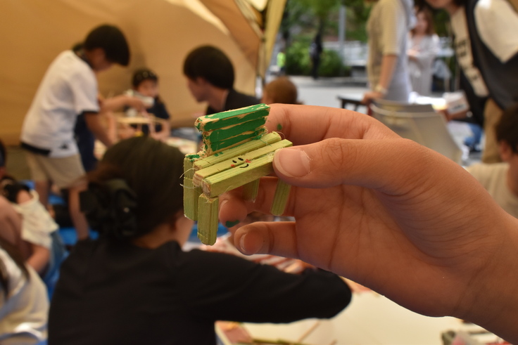 割り箸は何本つかってもOK、何を作ってもOKなので、子どもたちの自由な創造性が今回もとても光っていました✨