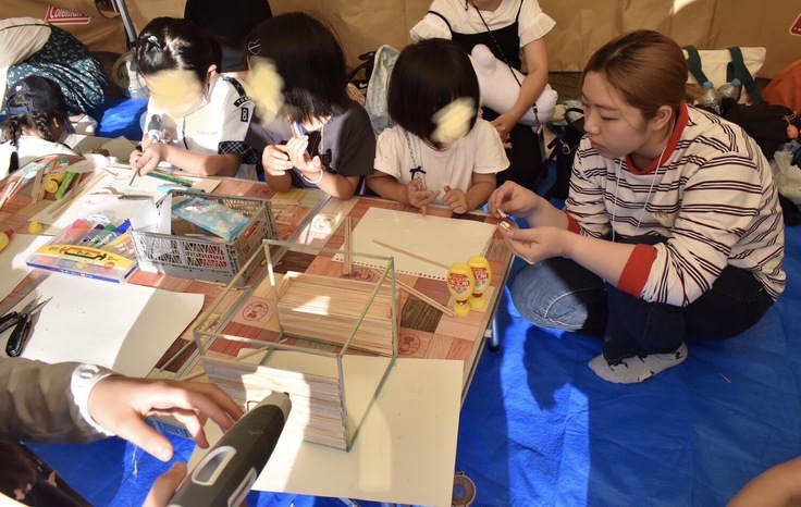 ワークショップでは、子どもたちが満足した顔で作品を持って帰っていきます。
