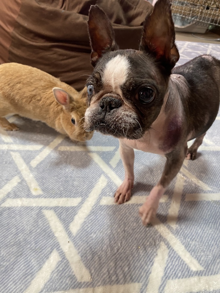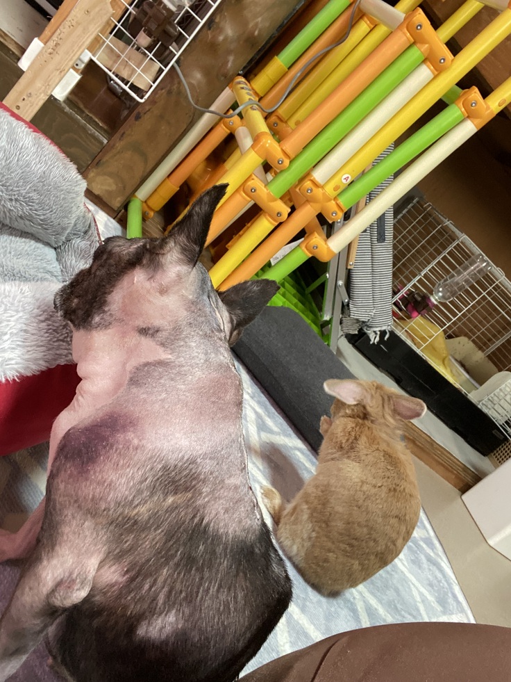 ↑うさぎのくるみちゃんもももが帰ってきて傍をちょろちょろ離れません。