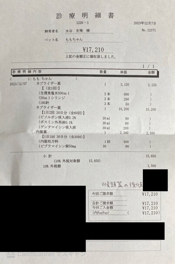 ↑12月7日 持病のクッシング症候群に対するホルモン剤を頂きました。