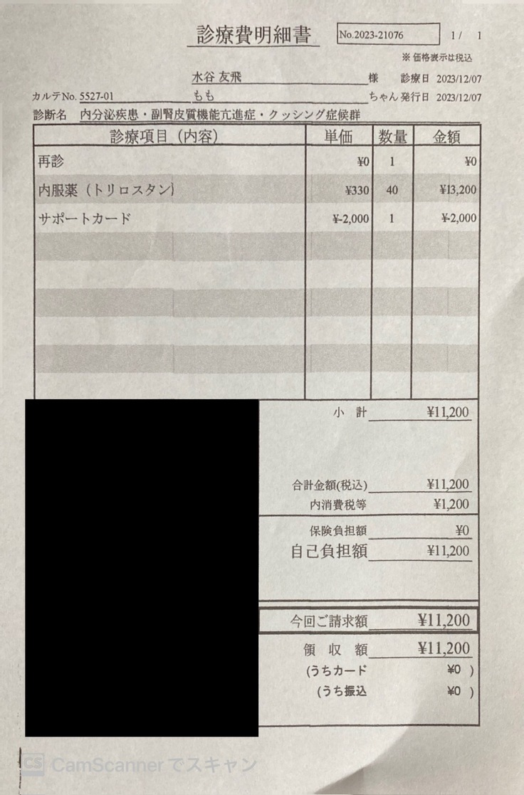 この日は、持病の“クッシング症候群”の治療薬も、かかりつけ医に貰いに行きました。