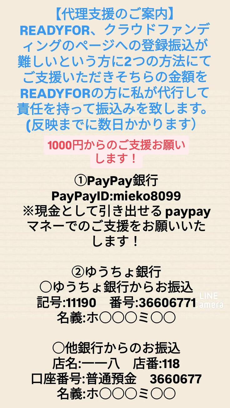 皆様からお預かりした代理支援金に関しましては責任を持ってREADYFOR様にお振込をさせていただきます。