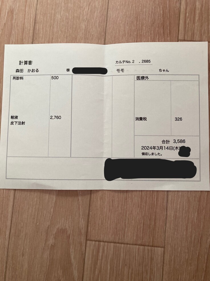 近頃は嘔吐も下痢も症状が治まっているので、処置内容も治療費も落ち着いています。