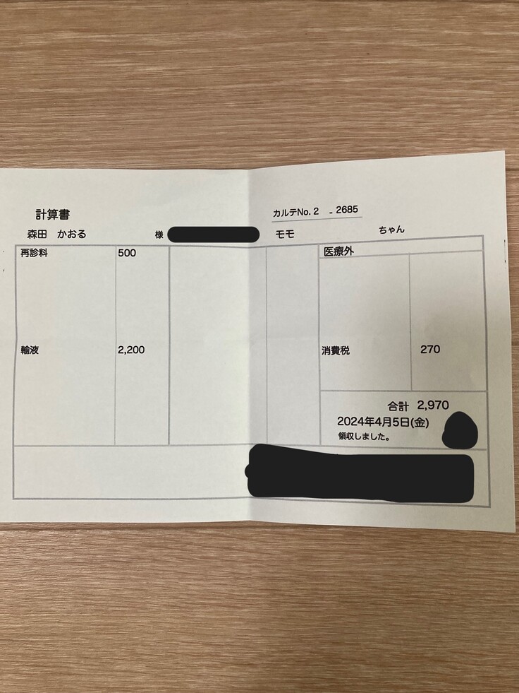 本日の治療費です。