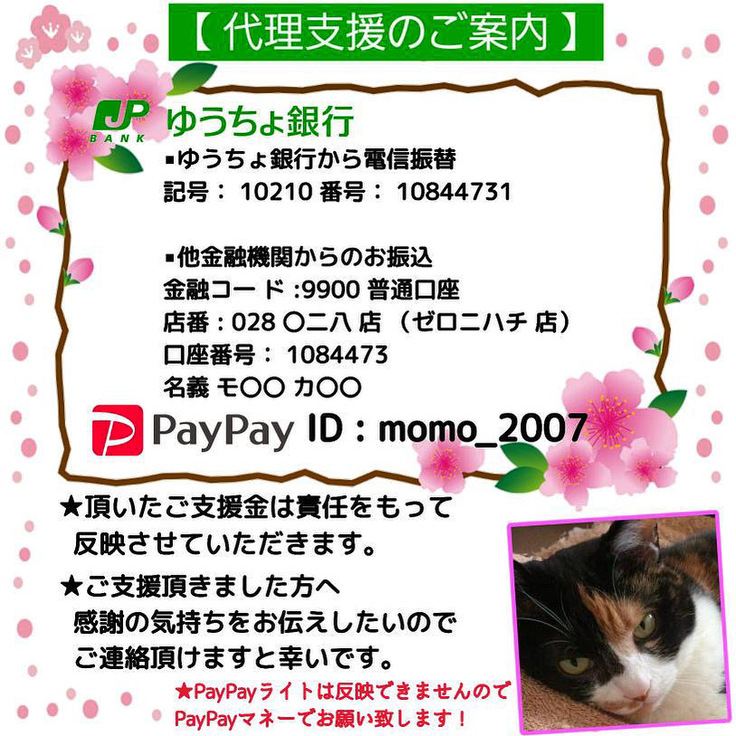 モモのために「ご支援」のご協力を何卒をよろしくお願いいたします。