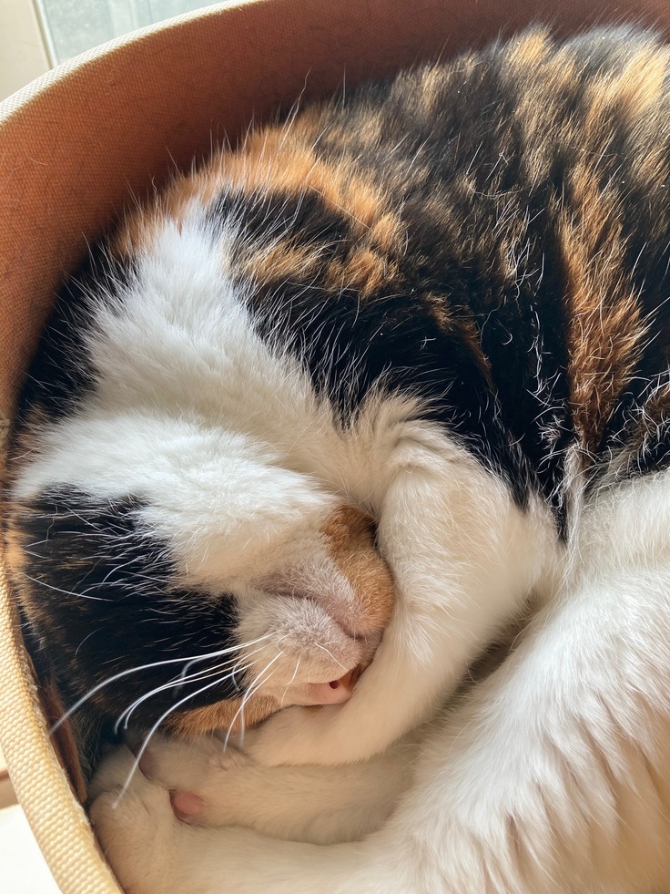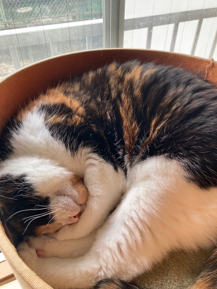 キャットタワーのてっぺんでアンモニャイト寝💤