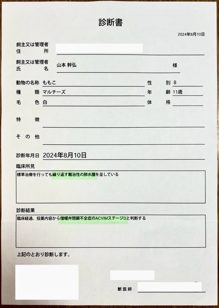 つい先日まで、もも子の僧帽弁閉鎖不全症のステージCでしたが、先週の診察でステージDになってしまいました。