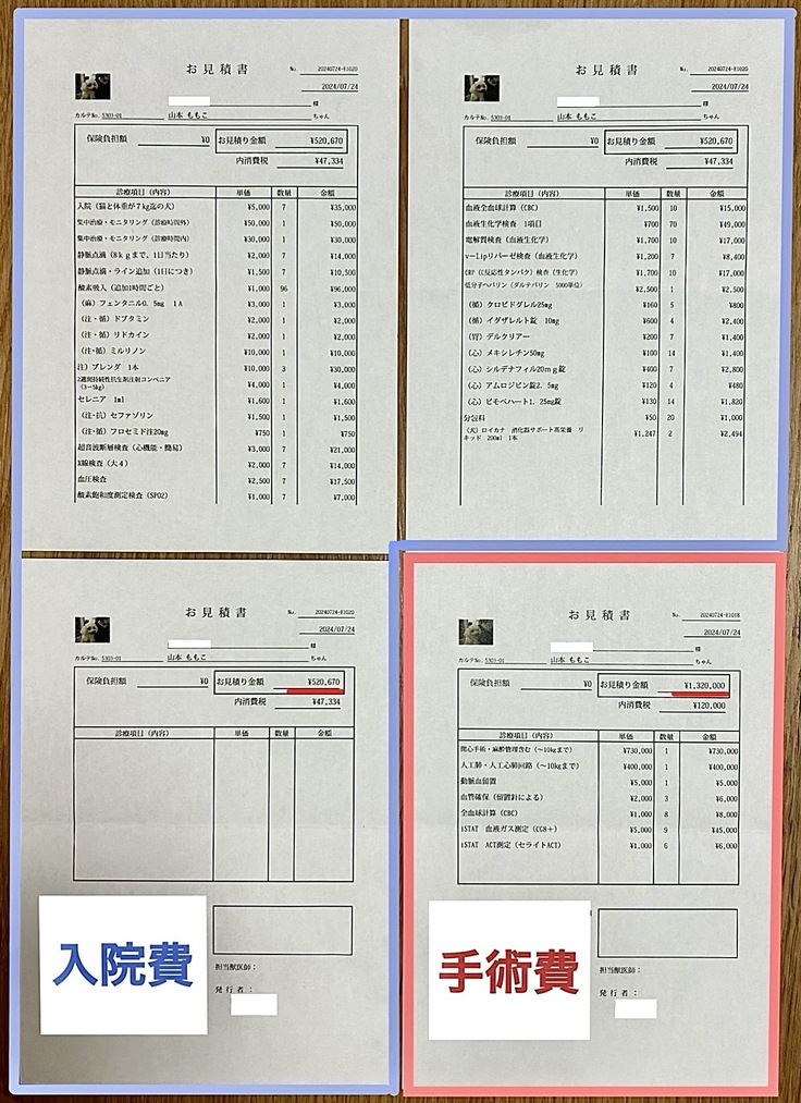 この入院費52万円は7日間の費用で、ももこがステージDと重篤なため2〜3週間ほどの入院になるであろうと先生から伺っております。ですのでおおよそ200万円ほどになる見込みです。