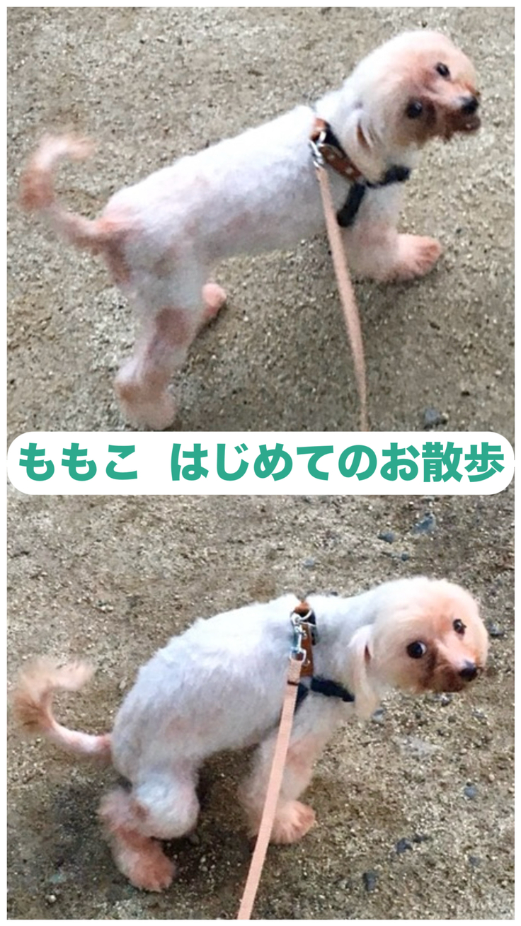 写真は我が家にきて初めてのお散歩です。