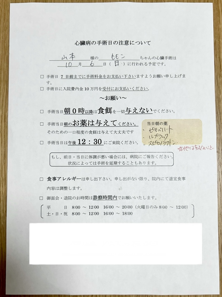 ももこの容態からみて、先生は9月下旬のお日にちを提案してくださいましたが、その時点での達成率が担保にできるほど上がっていないのではないかという事もあり、10月6日を選びました。