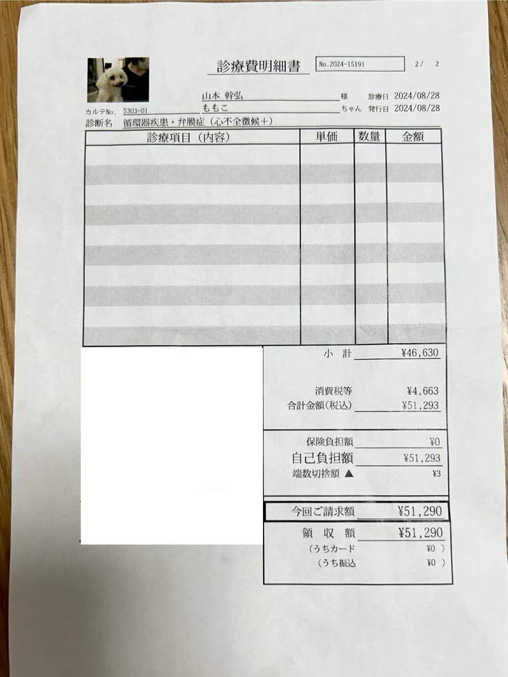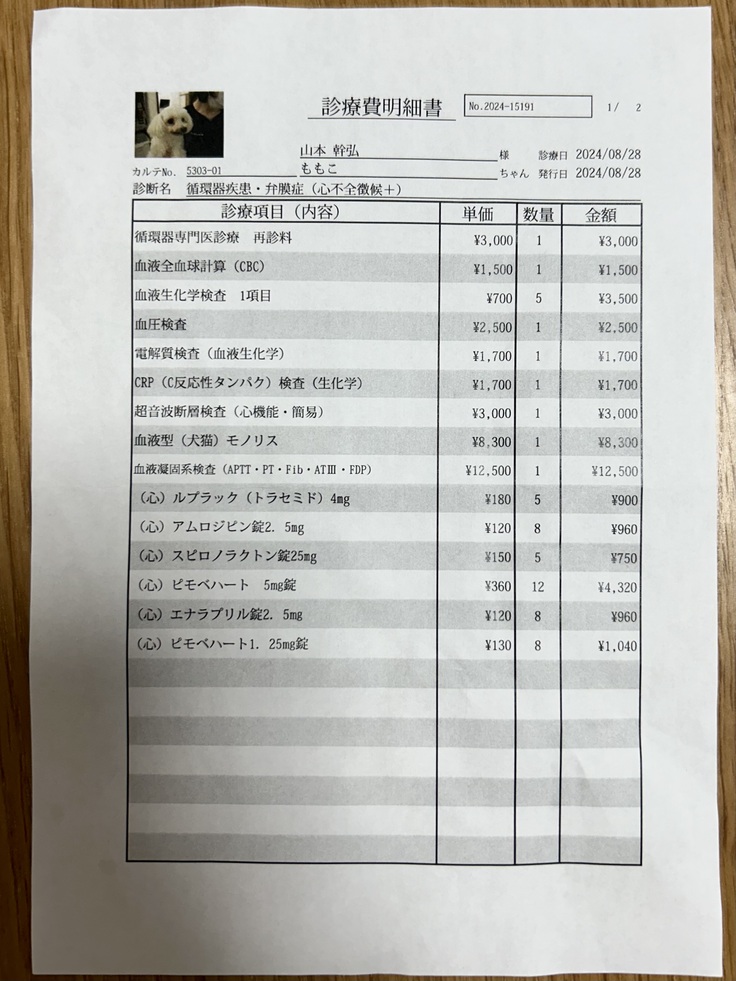 ここ2日間、普段の検査のお話をしてみましたが、領収書の添付を忘れてしまいました。以下が今回の領収書です。
