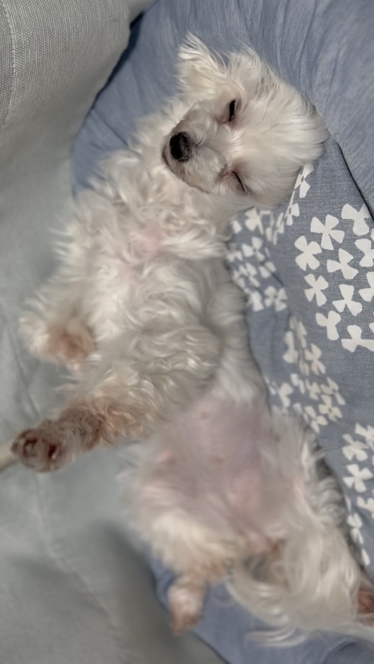 今朝のももこは震えることはなくなり、気持ち良さそうに寝ていました。