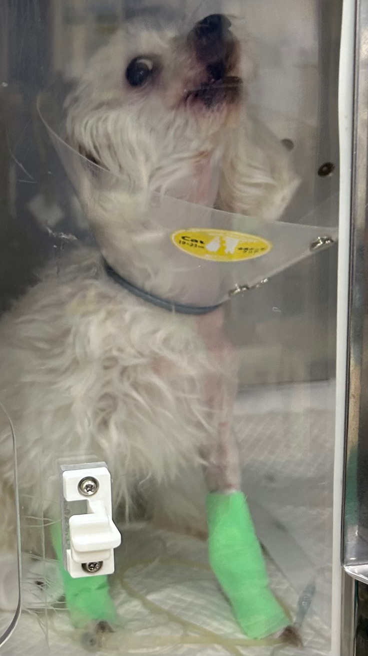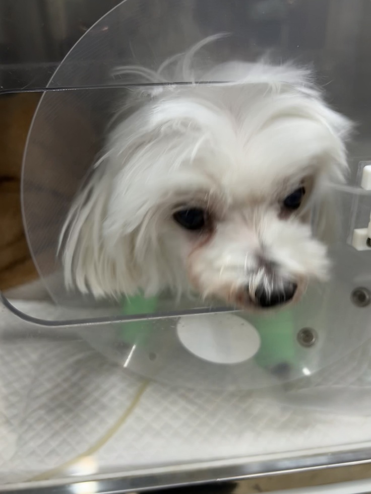 術後興奮していたらしく鎮静剤を打って眠ったそうですが、そーっと覗きに行ったら起きてしまいました。慌てて隠れながら帰ってきました。