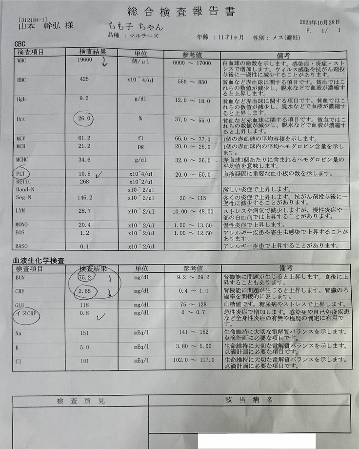 腎臓の数値は相変わらず悪く、今は腎臓や血栓の治療を受けています。