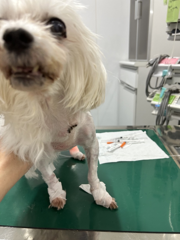 しばらくは自宅で1日2回腎臓のための皮下注射をし、通院しながら抗血栓薬の点滴を続けます。