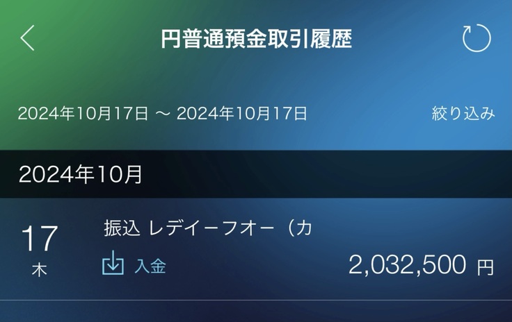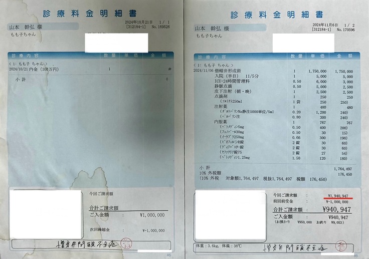 1,000,000円と940,947円の2回に分けて精算致しました。