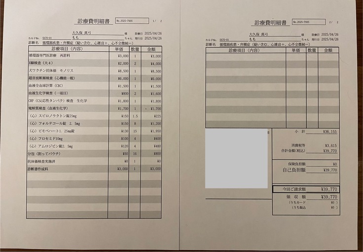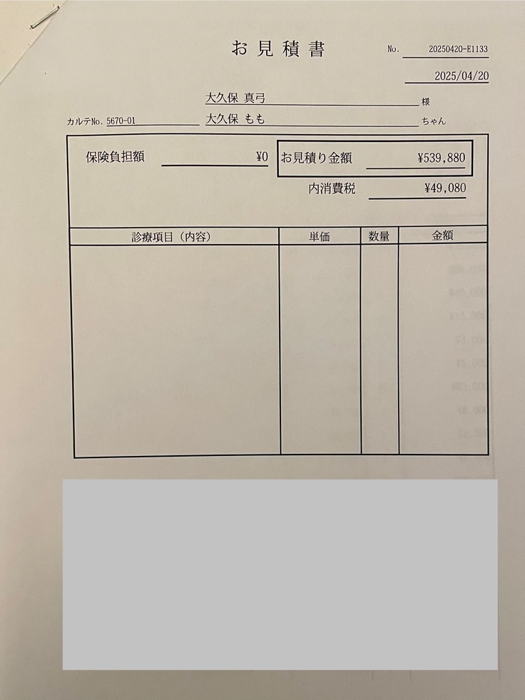 ▶︎ 4. 掲載している資料についてページ上に掲載している診断書や診療明細書などの資料は全て動物病院から掲載の許諾を得ております。