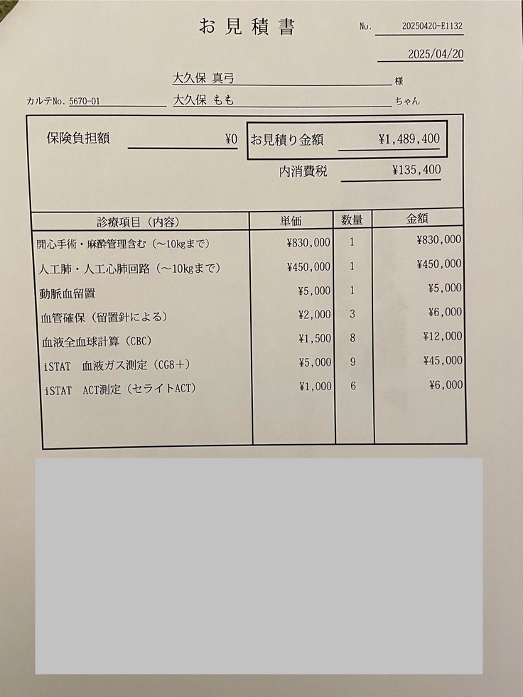 手術でしか助ける道がないと診断され、どうしても皆様のお力が必要です。
