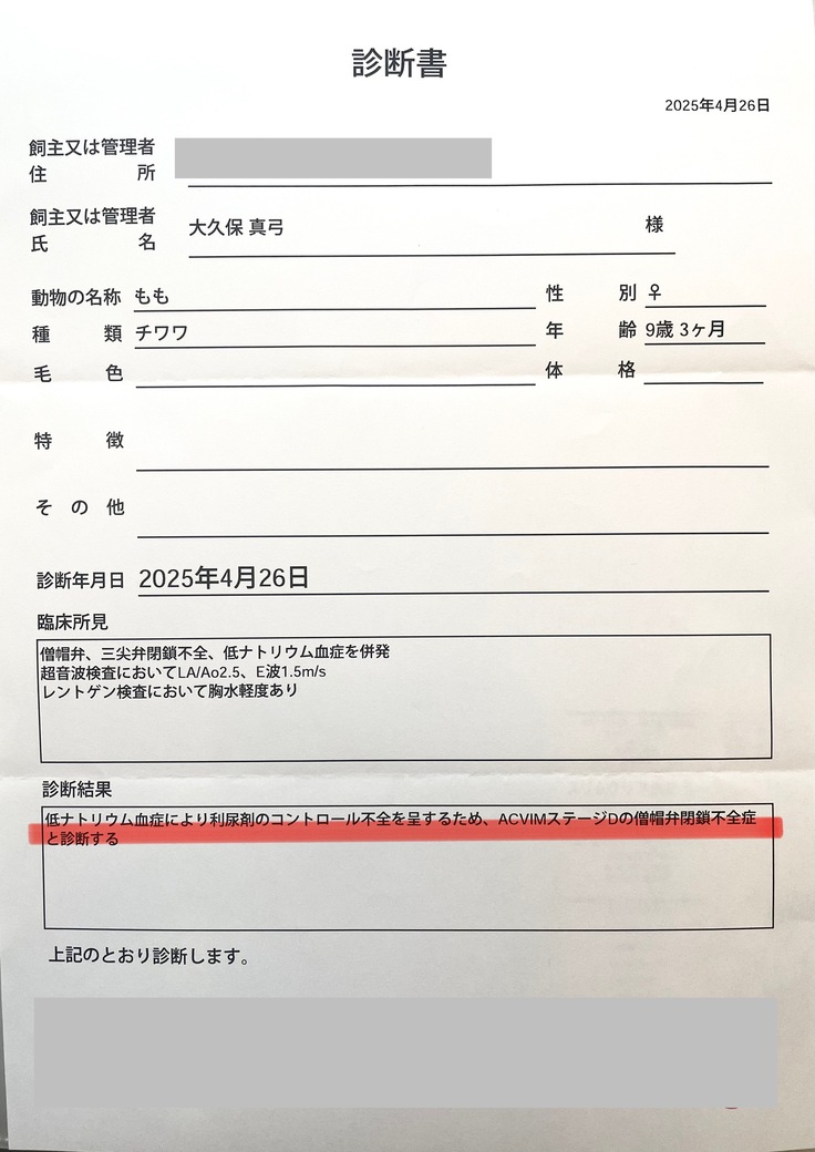 **心臓病(僧帽弁閉鎖不全症ステージD) 余命4か月**
