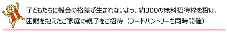 ・中野区社会福祉協議会と連携し、中野区内の児童養護施設、子ども食堂、無料塾に通うお子さんとその保護者の方をご招待