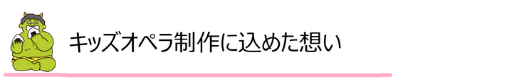 そんな2人が出会い、オペラと演劇を融合させた、子どものための「キッズオペラ」を創ろうと意気投合したことでプロジェクトがスタートしました。その背景には、大人と子どもが一緒に楽しめるオペラが多くない現状と、子どもが芸術活動を体験することを通じて“変化”していくことへの想いがあります。