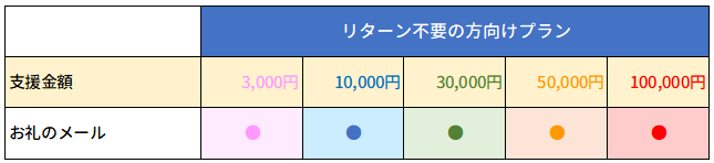 リターンは、大きく分けて以下の3つのプランがあり、それぞれいくつかの金額のコースに分かれています。