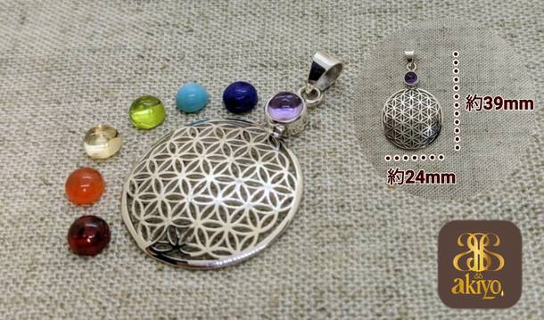 天然石付きフラワーオブライフネックレス(シルバー925)チェーン付き