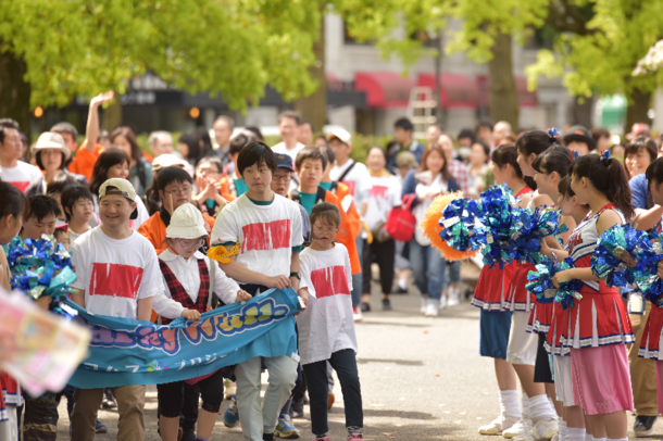 『バディウォーク in ヨコハマ』では山下公園の中を障がいのある人とない人が共に歩きます。そして、客船の氷川丸の向いにある「お祭り広場」では、地元団体によるチアダンスや太鼓遊びなど、約10のアクティビティ(遊び)を楽しむことができます。イベントに参加する側、運営する側が同じ体験を通じて「育ちあう」機会を持てるよう、アクティビティを企画します。