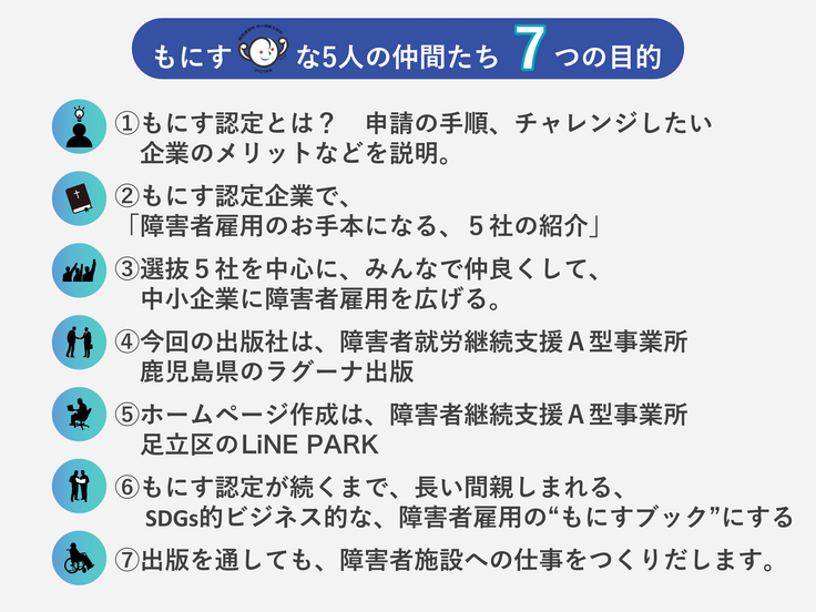 この本を出版することにより、もにす認定を申請をする企業を増やしたい。(障がい者を戦力として雇用をしてほしい)
