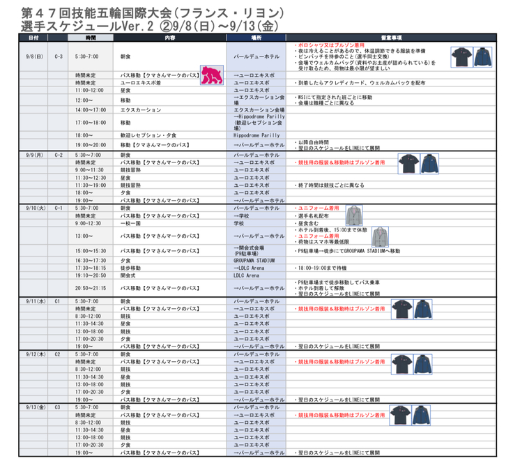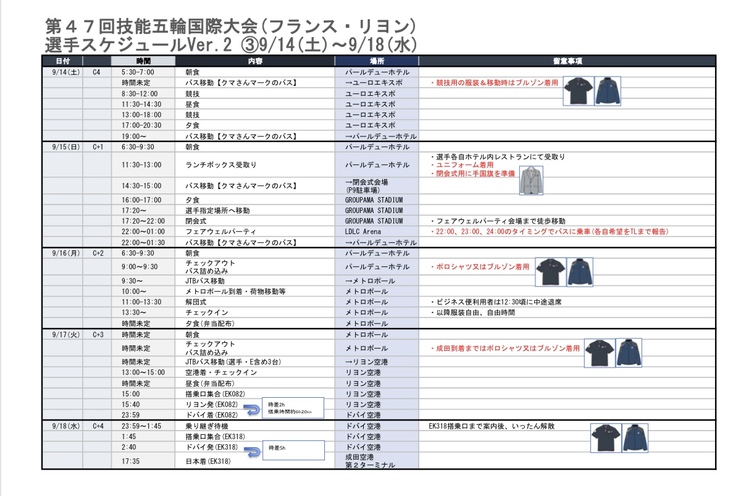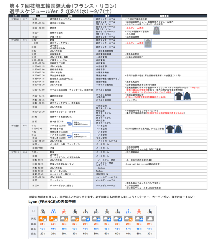 リヨン大会に係る選手のスケジュール資料について、お知らせいたしま
