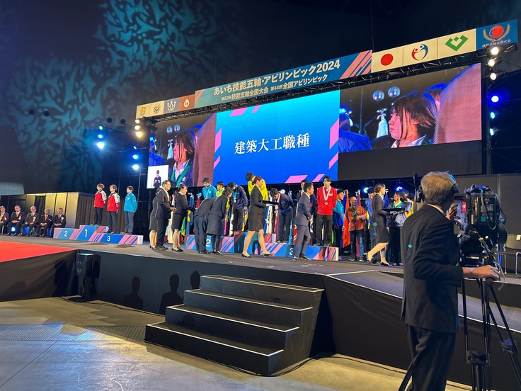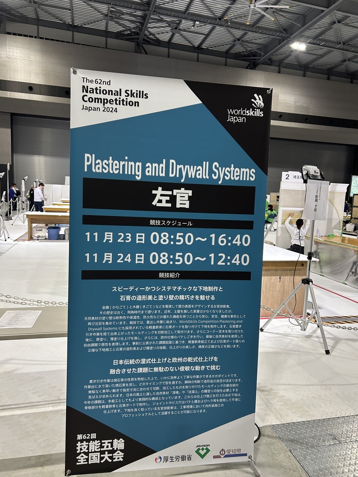 第62回技能五輪全国大会が2024年11月22日(金)~11月25日(月)にわたり、愛知県国際展示場(Aichi Sky Expo)を主会場に開催され、建設学科から6職種9名(建築大工職種3名・左官職種2名・家具職種1名・とび職種1名・タイル張り職種1名・造園職種1名)の学生が出場しました。うち、5名が銀賞・銅賞・敢闘賞を受賞しました。ご支援をいただいた皆様にご報告とともに御礼を申し上げます。誠にありがとうございました。