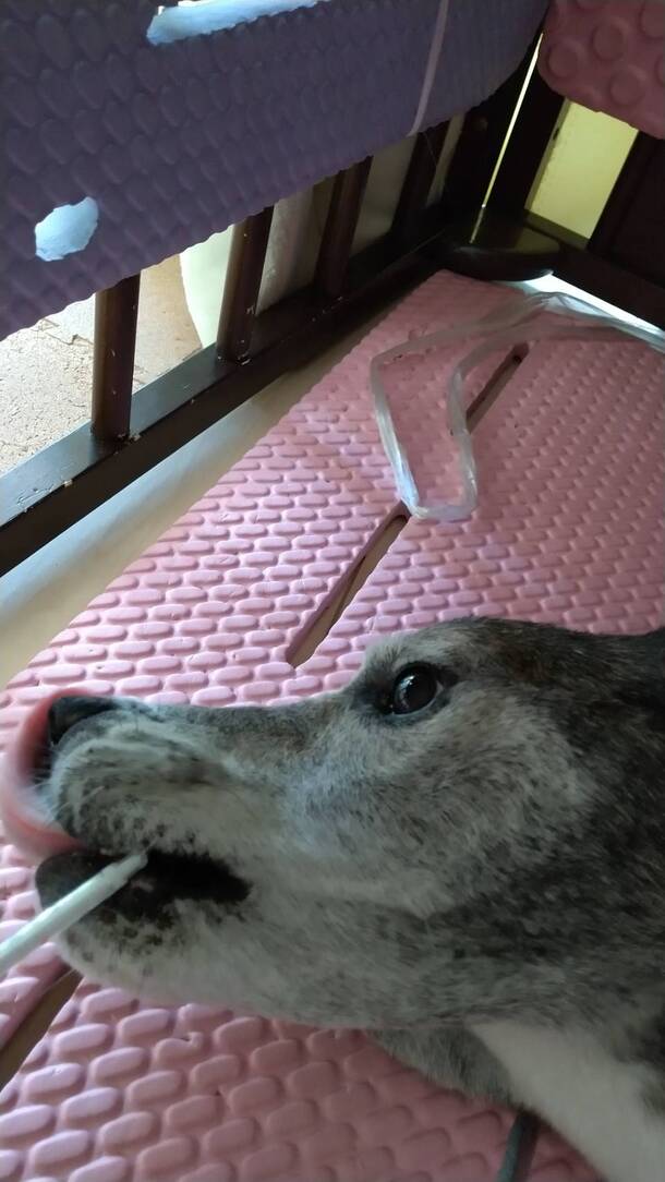ムーンはお薬が美味しいのか、差し出した注射器に自分から口をあけぺろぺろしてくれます。毎日の事なので助かります。