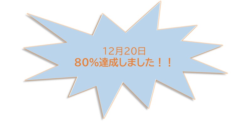 本日は22日・・・2日前になりますが な、なんと!!80%を達成しました!!!