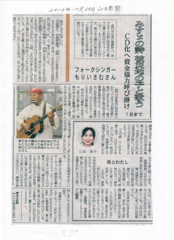 今日、みすゞこうぼうに電話があり、「山口新聞の記事を読みました。素晴らしい活動ですね!是非、支援をしたいので、銀行振り込み講座を教えて下さい。」と連絡がありました。他にも問い合わせがありましたが、その方も、福島の子供達を招待したり、支援活動をされているみたいで、話しが弾み…。今度、会って交流しようと思っています。支援の輪が広がる事、嬉しいですね!みなさん!目標達成に手が届くところまで来ましたが、最後まで全力で頑張りますので宜しくお願いします!!!