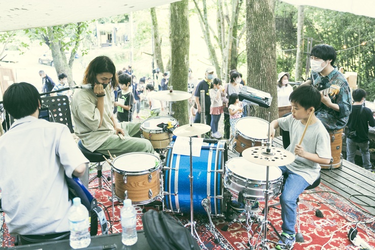 2020年、コロナの流行が始まった際、半分趣味でやっていたドラムのレッスンのお仕事の拠点を室内から屋外に移せないかと考え、結果、2020年の秋から福岡県新宮町の農村部で竹藪化した耕作放棄地を借りて、音楽教室 兼 遊び場作りを始めました。