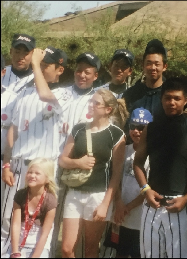 中学3年生の夏休み、代表に選ばれシカゴのイリノイ州で2週間行われる野球の大会に参加した際、3人兄妹の家にホームステイしました。