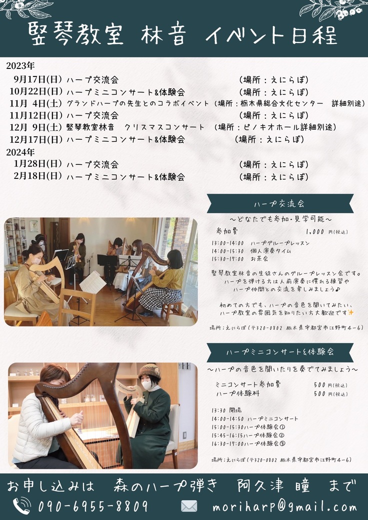 12月9日はハープ教室の生徒さんの発表会もございます。