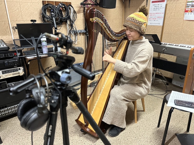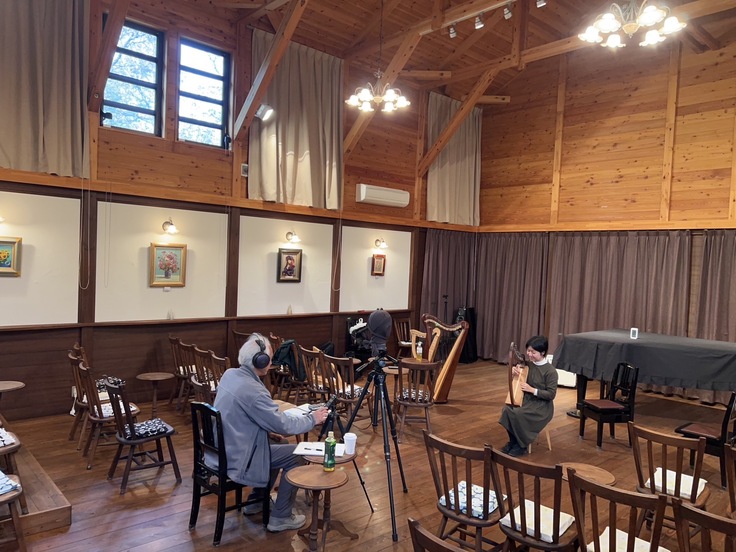 飯村さんが、ハープ音源と調和する、とても素敵な自然音を合わせてくださいました。