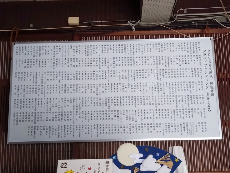 クラウドファンディングご支援誠にありがとうございました。ご芳名板(ご希望者のみ)を店に飾らせていただきました。