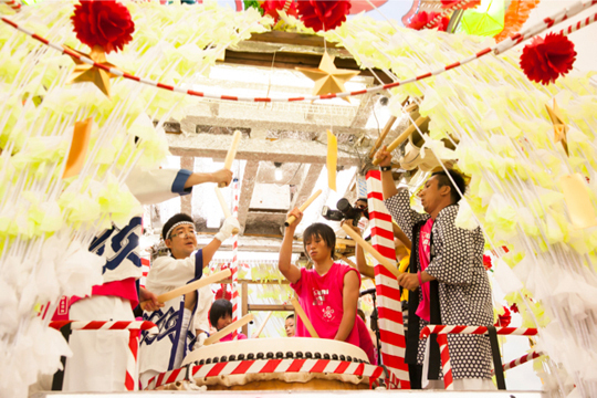 東日本大震災の津波により流された七夕まつりの山車を復活させ、
