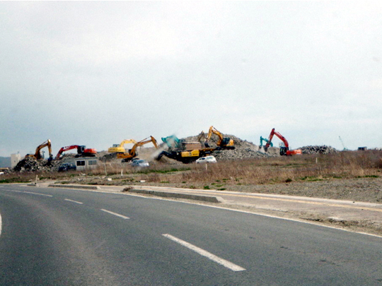 現在の陸前高田市は、震災による津波の被害を受け残った建物はほぼ全て取り壊され、高台の造成が着々と進んでいます。高田町内の道路は、平日も土日もひっきりなしにダンプカーや重機が行き交い、急ピッチに作業が進んでいます。