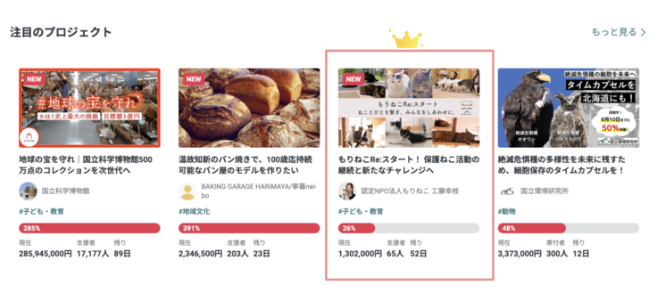 おかげさまで、もりねこのプロジェクトが注目のプロジェクト第3位となりました!