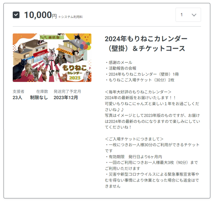 2024年もりねこカレンダー(壁掛)&チケットコース 10,000円