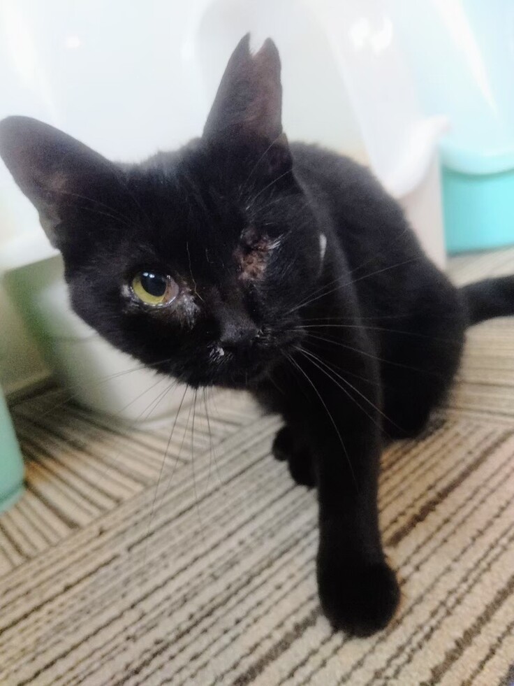 FIVキャリアで、生まれつき片目が欠損し、慢性的な鼻炎や涙の症状があります